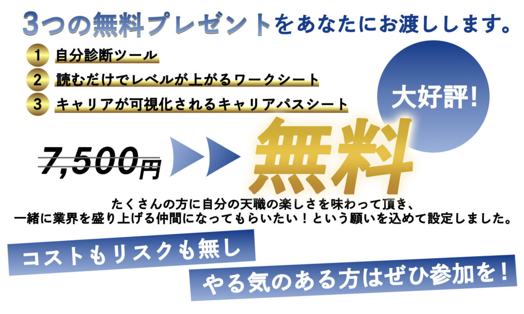 | やりたいことがない。子供の頃の夢がない。 今さえよければよい方。お金を稼げればよい方。はこのプログラムに向いていませんので、他のプログラムを受講されることをお勧めします。 |
